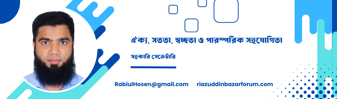 আসসালামু আলাইকুম ওয়া রহমাতুল্লাহি ওয়া বারাকাতুহু। রিয়াজউদ্দিন বাজার ব্যবসায়ী উন্নয়ন ফোরাম আমাদের সকল ব্যবসায়ীদের একটি সম্মিলিত প্রয়াস। এই সংগঠনের লক্ষ্য হলো বাজারের সার্বিক উন্নয়ন, ব্যবসায়ীদের অধিকার রক্ষা এবং স্বচ্ছ ও শৃঙ্খলাপূর্ণ ব্যবসায়িক পরিবেশ নিশ্চিত করা। আমরা বিশ্বাস করি—ঐক্যই শক্তি। সকল সদস্যের সক্রিয় অংশগ্রহণ, পারস্পরিক সহযোগিতা এবং সংগঠনের নিয়ম-নীতির প্রতি শ্রদ্ধাশীল মনোভাবই আমাদের সফলতার মূল চাবিকাঠি। সেক্রেটারি হিসেবে আমার দায়িত্ব হবে সংগঠনের কার্যক্রম সুষ্ঠুভাবে পরিচালনা করা, সদস্যদের মতামত গ্রহণ করা এবং সকল সিদ্ধান্ত বাস্তবায়নে কার্যকর ভূমিকা রাখা। আমরা ইনশাআল্লাহ একটি স্বচ্ছ, জবাবদিহিতামূলক ও আধুনিক ব্যবস্থাপনা গড়ে তুলতে প্রতিশ্রুতিবদ্ধ। আমি সকল সদস্যের আন্তরিক সহযোগিতা কামনা করছি। সম্মিলিত প্রচেষ্টায় আমরা রিয়াজউদ্দিন বাজারকে একটি আদর্শ ও শক্তিশালী ব্যবসায়িক কমিউনিটিতে পরিণত করতে সক্ষম হবো, ইনশাআল্লাহ। ওয়াসসালামু আলাইকুম ওয়া রহমাতুল্লাহ। মোজাম্মেল সেক্রেটারী রিয়াজউদ্দিন বাজার ব্যবসায়ী উন্নয়ন ফোরাম